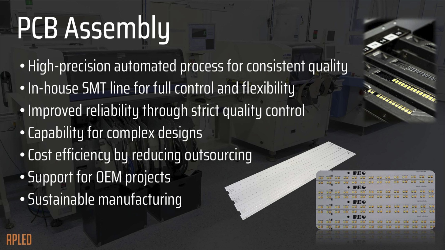 The company’s product portfolio includes a wide range of modern LED luminaires, featuring the latest generation LED diodes mounted on custom-designed modules. APLED’s commitment to quality is evident in its in-house SMT (Surface Mount Technology) production line and dedicated testing laboratories, where each product is rigorously verified for performance and longevity.