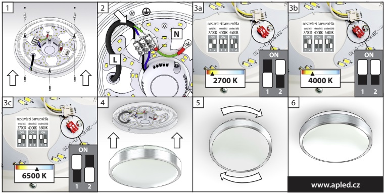 - Color temperature: 2700 K / 4000 K / 6500 K