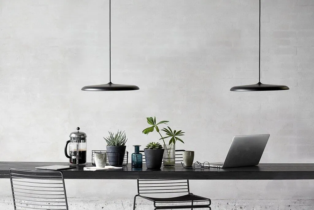 Sisäänrakennettu LED-paneeli on peitetty opalisoidulla varjostimella, joka pehmentää ja hajottaa valoa. Kuten nimi antaa ymmärtää, muotoilu on saanut inspiraationsa musiikin maailmasta – rumpusetin lautasesta.