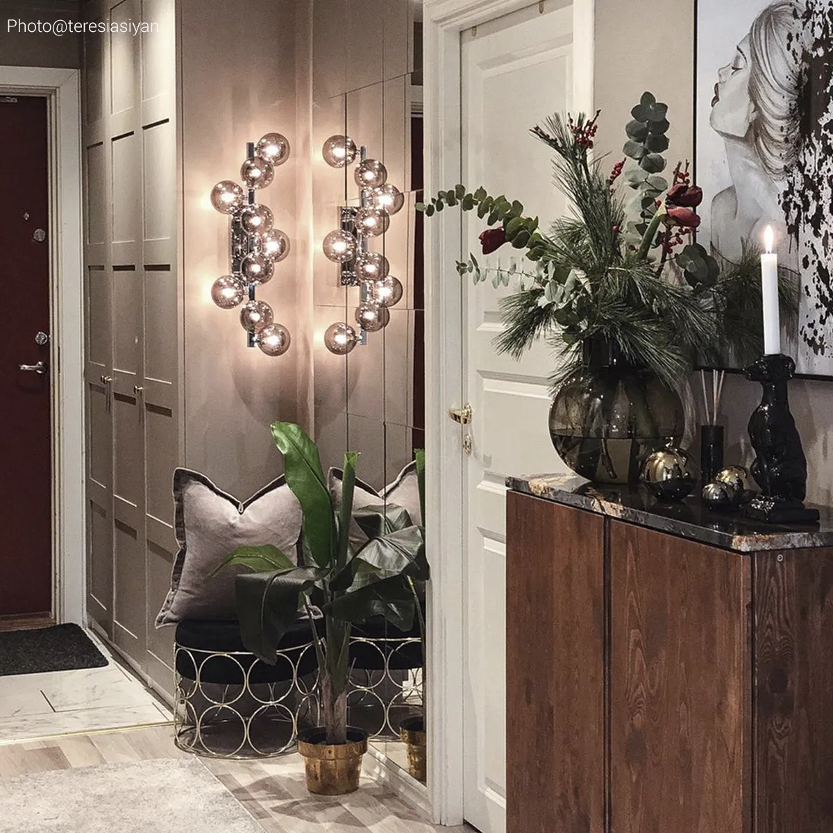 Splendor ir valdzinoša sienas lampa, kas sastāv no caurspīdīgiem, skaistiem stikla kupoliem. Jūs varat novietot šo izteiksmīgo gaismekli gan stāvošā, gan guļus stāvoklī pie sienas.